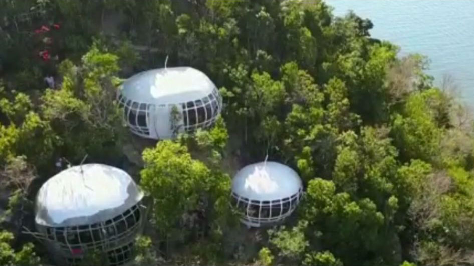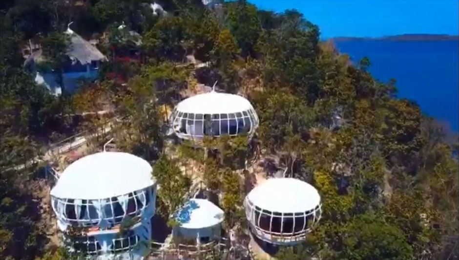 The construction of the stylish Lighthouse 40m above sealevel with its 8 micronesian Bungalows, 3 UFOs incl SPA and infinity Pool.